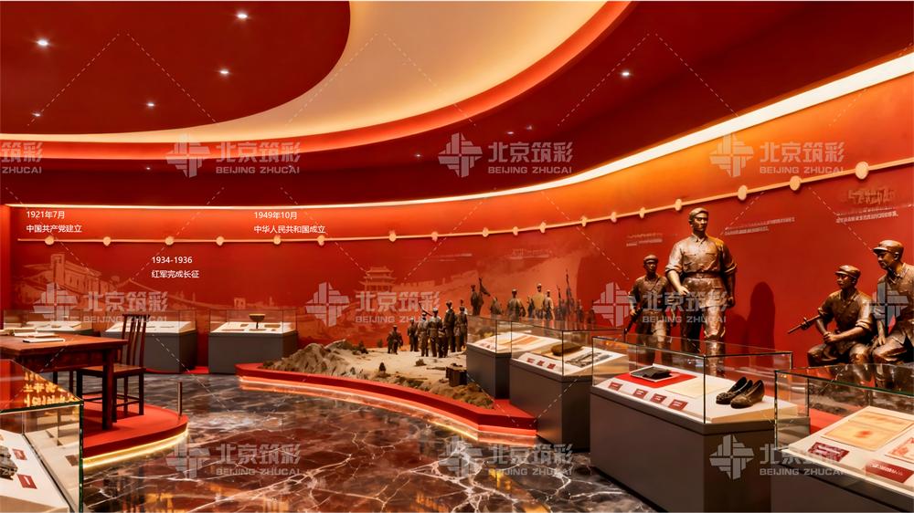 设计要点:可采用“长廊式”布局,配合多媒体时间轴、历史场景复原、珍贵史料数字展柜等元素,营造穿越历史的沉浸体验。