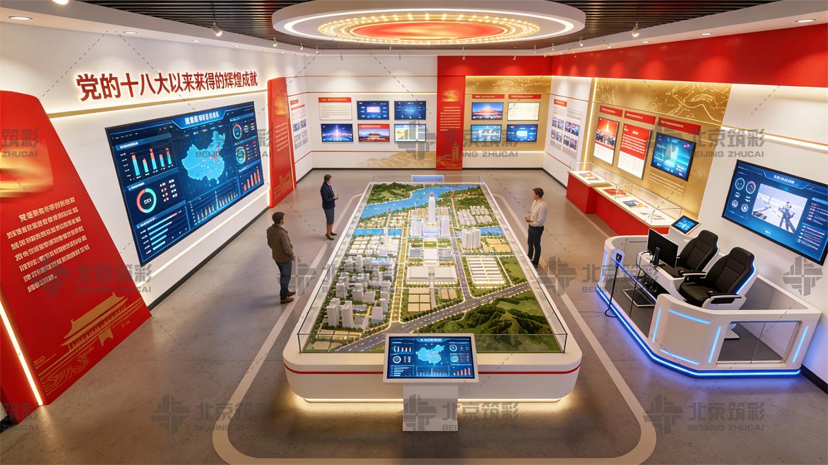 设计要点:采用数据可视化、沙盘模型、互动屏幕、VR体验等现代展示手段,打造震撼的视觉体验和互动感受。